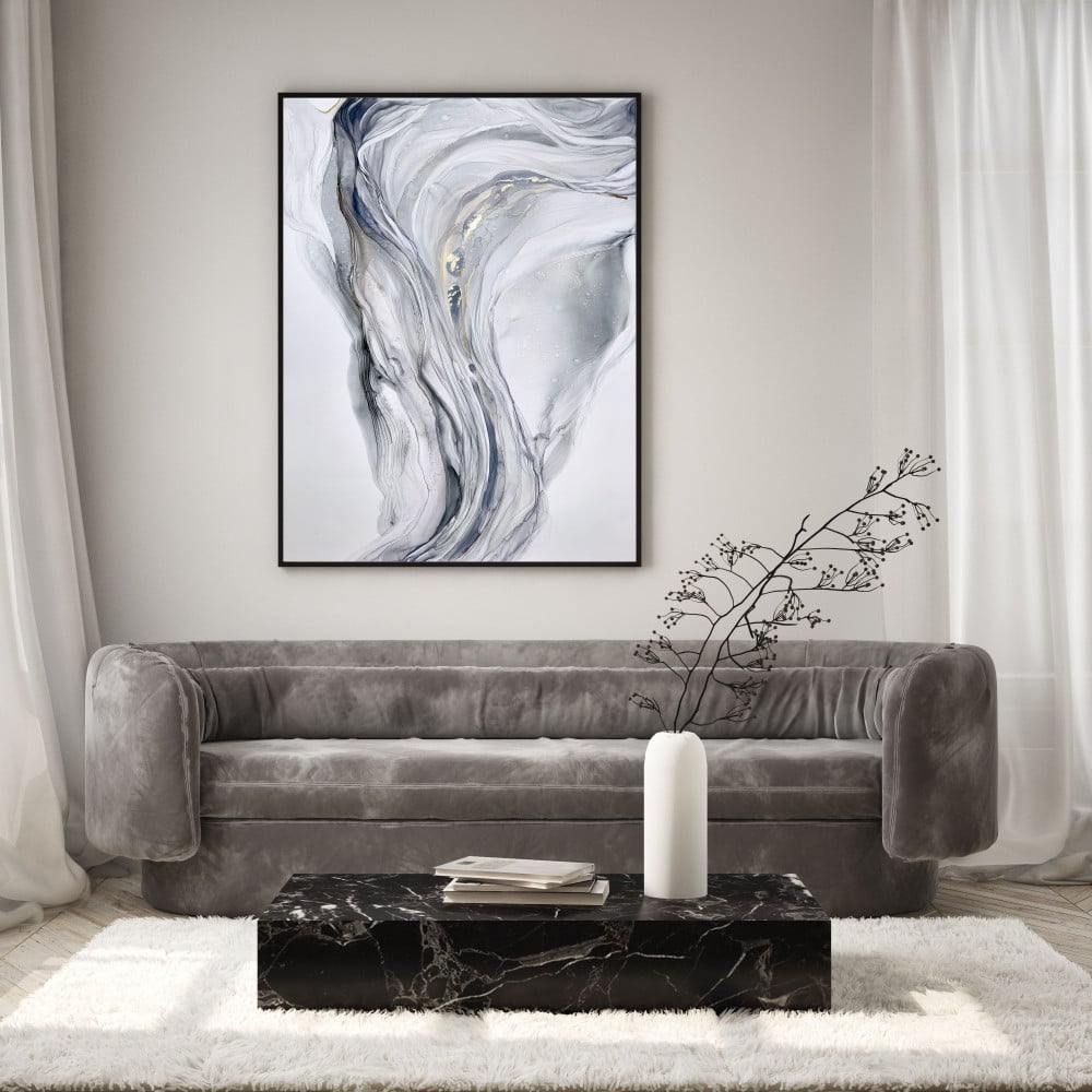 •لوحات قماشية مشدودة على إطار مخفي او مع امكانية اضافة برواز خارجي