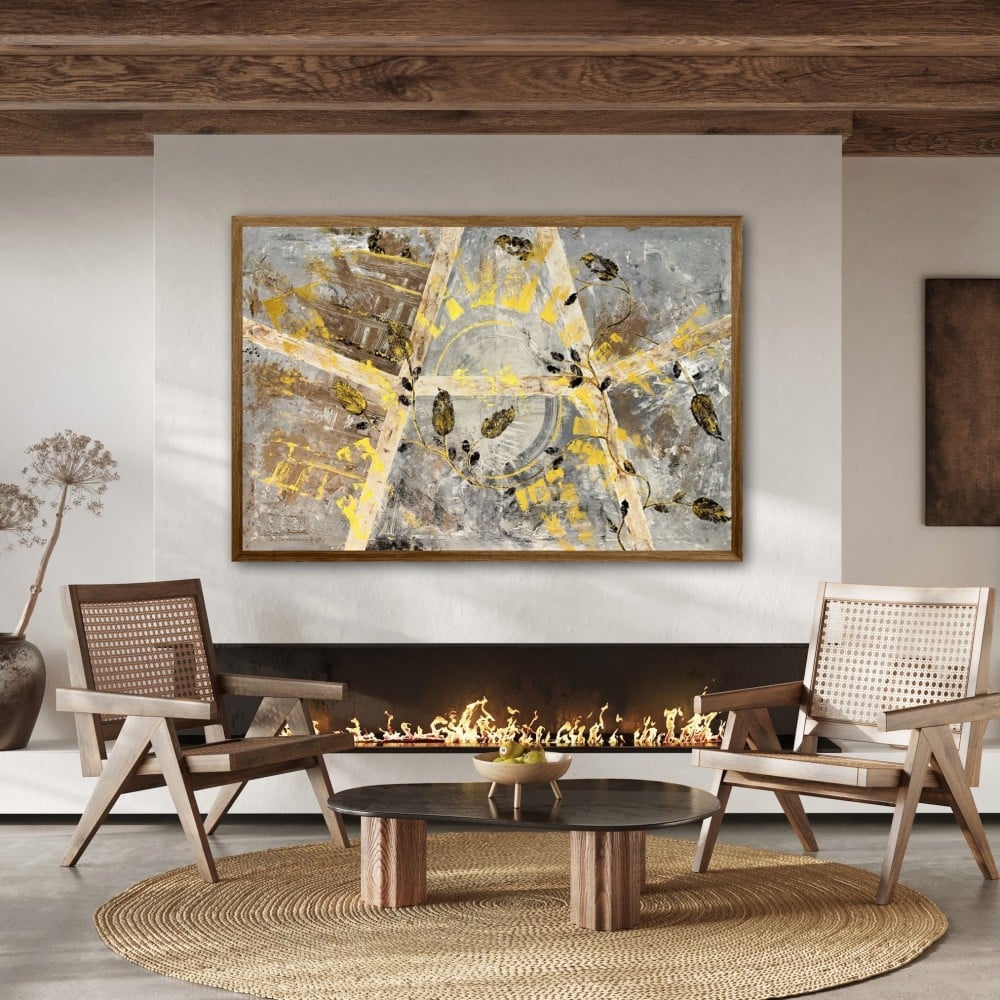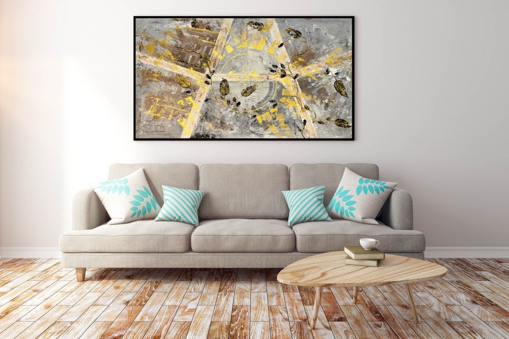 •لوحات قماشية مشدودة على إطار مخفي او مع امكانية اضافة برواز خارجي
