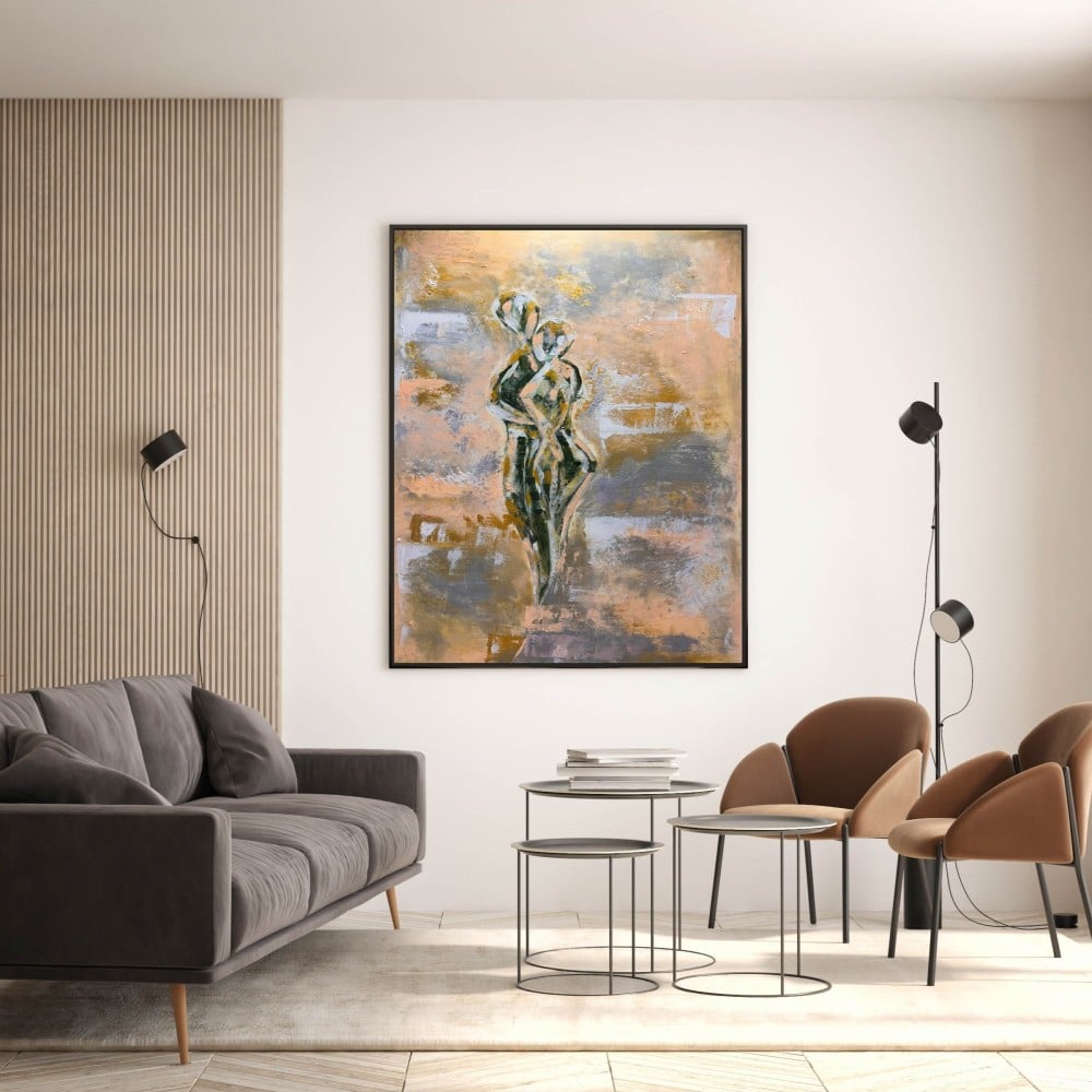 •لوحات قماشية مشدودة على إطار مخفي او مع امكانية اضافة برواز خارجي